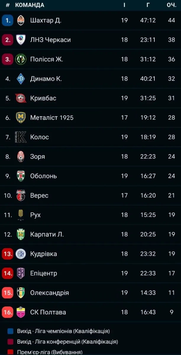 - Кривбас залишається на п'ятому місці турнірної таблиці і дає шанс відірватися Динамо, а Оболонь і надалі перебуває на дев'ятій позиції.