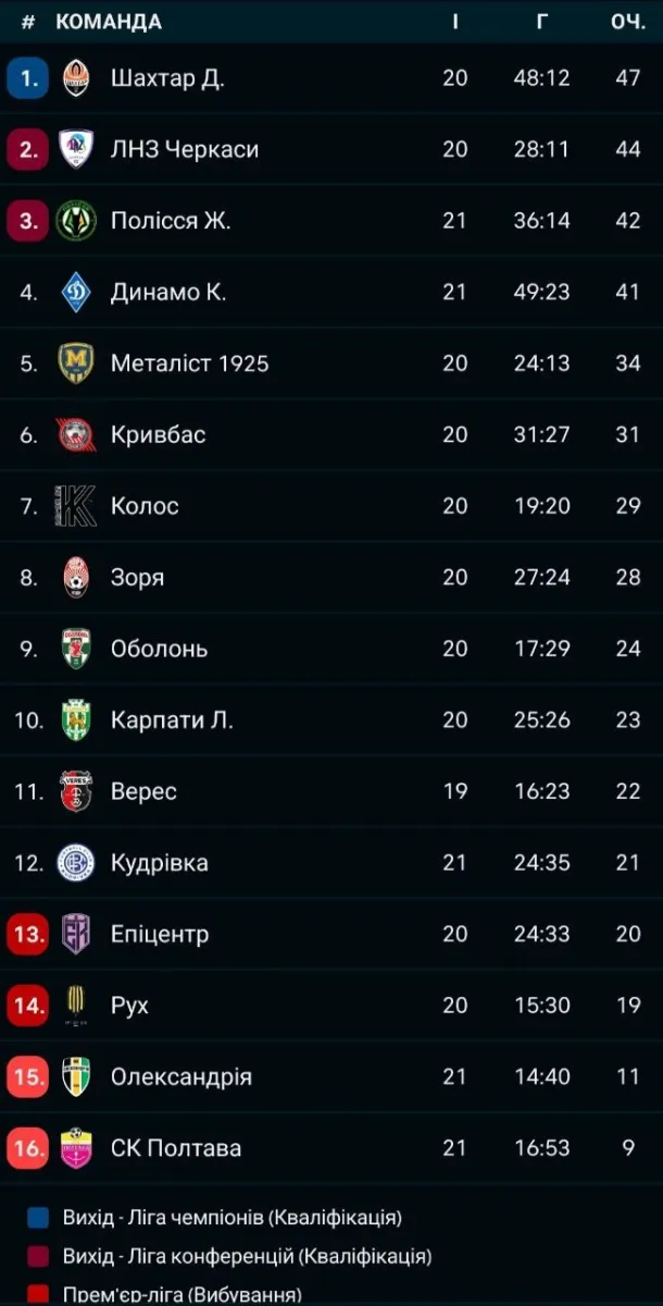 - Харків'яни займають п'яте місце турнірної таблиці УПЛ, відстаючи від четвертого Динамо на сім очок, тоді як СК Полтава залишається останньою з дев'ятьма балами.