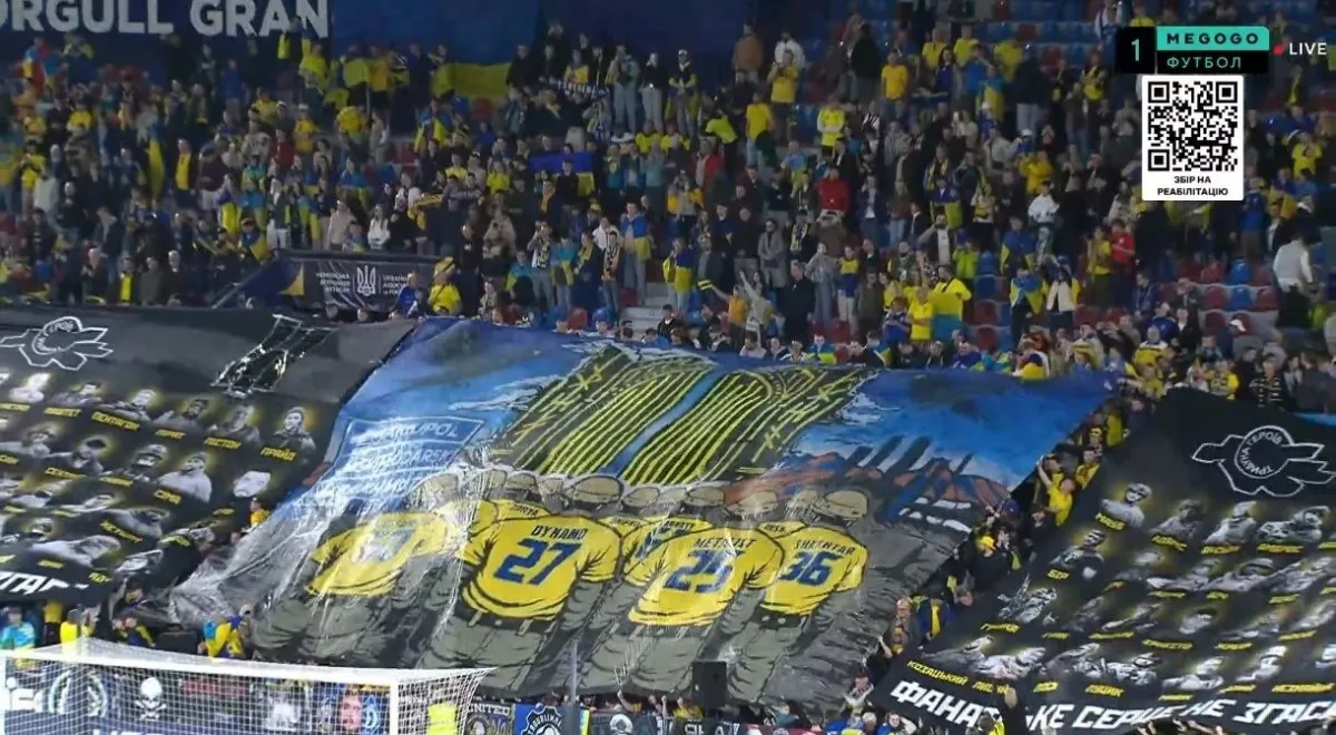 Під час поєдинку Україна – Швеція у півфіналі плейоф відбору до чемпіонату світу-2026 вболівальники нашої збірної відзначили хоробрість воїнів ЗСУ особливим банером.