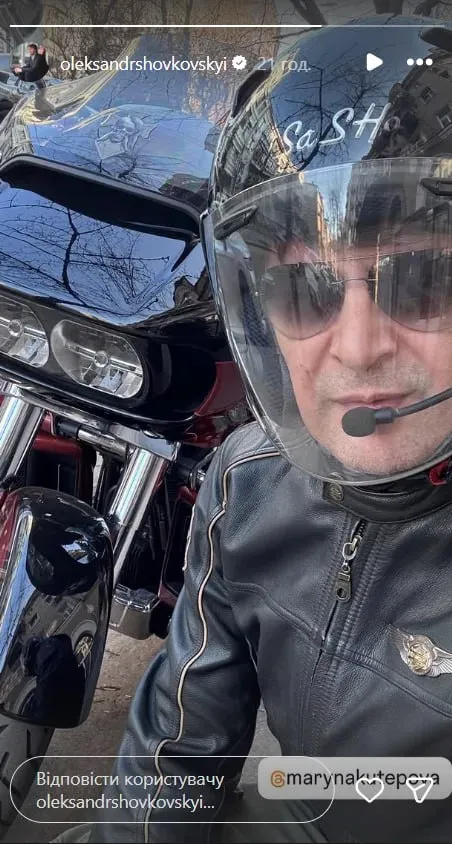 Український колишній воротар та головний тренер Динамо 51-річний Олександр Шовковський на своїй особистій сторінці в Інстаграмі у сторіс опублікував фотографію з байком.