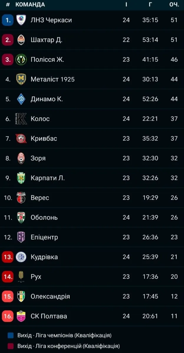 - Харків'яни знову обійшли київське Динамо і повернулися в топ-4, хоча випереджають біло-синіх лише за додатковими показниками.