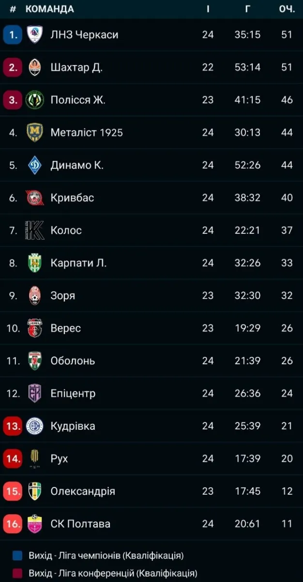 УПЛ. 24-й тур