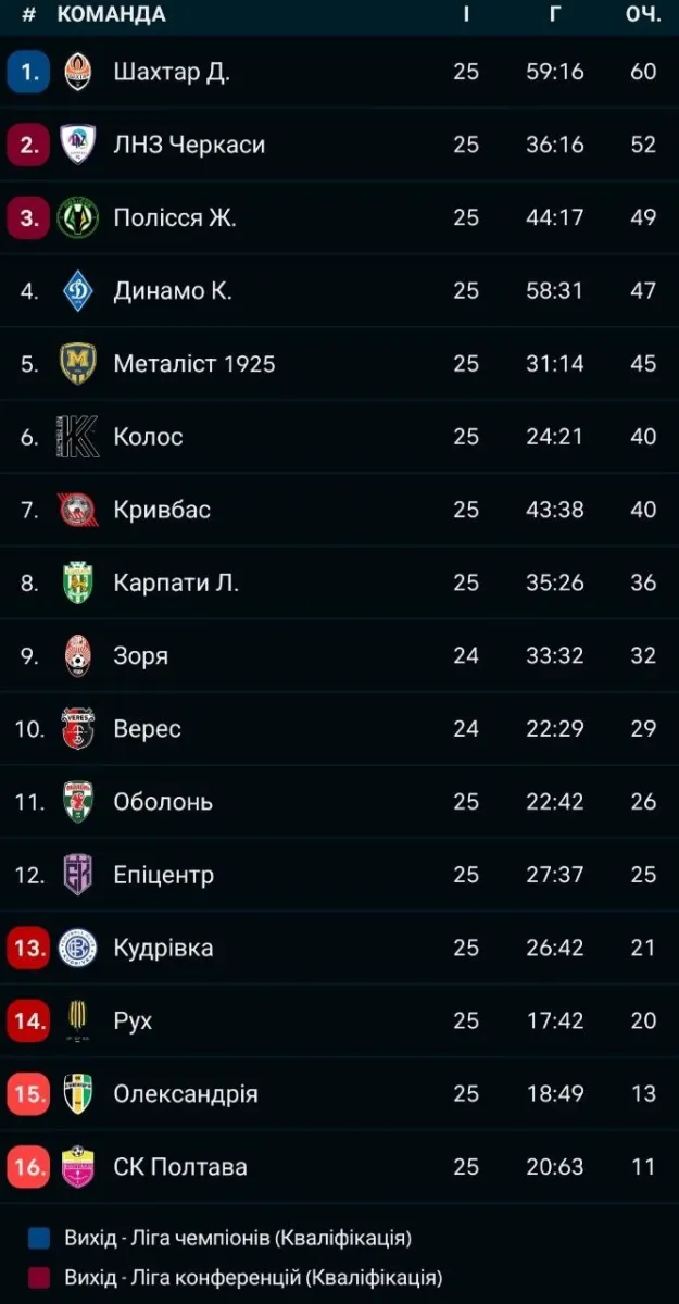 УПЛ. 25-й тур