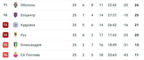 Наразі Епіцентр посідає 12 місце в турнірній таблиці, на чотири очки випереджаючи зону стикових матчів і на 12 балів – зону прямого вильоту.
