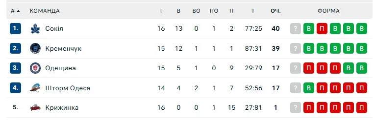 Сокіл розгромив Одещину і знову випередив Кременчук: турнірна таблиця чемпіонату України з хокею