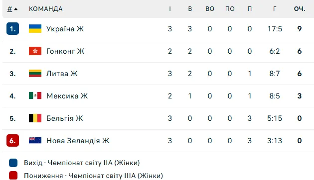 Жіноча збірна України з хокею розгромила команду Бельгії (5:1) та достроково зберегла за собою місце у дивізіоні IIB чемпіонату світу у Гонконзі (Китай), закріпившись на першому місці в групі.