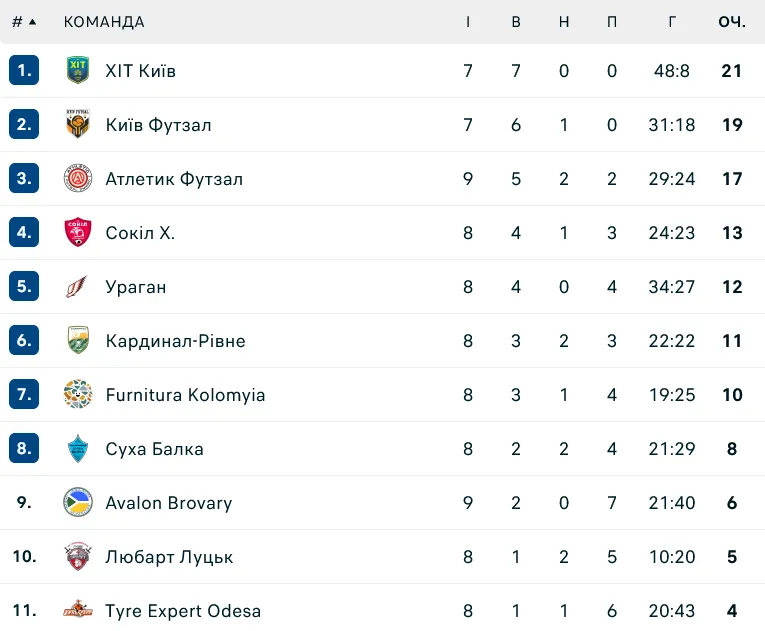 Фурнітура та Сокіл закрили дев'ятий тур української Екстра-ліги: турнірна таблиця чемпіонату України з футзалу