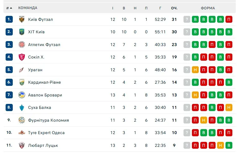 Нічия Авалона та Урагана, перемога Київ Футзала над Любартом: турнірна таблиця чемпіонату України з футзалу