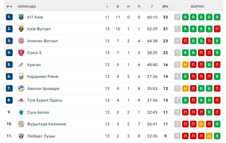У футзальній Екстра-лізі відбулися три останні поєдинки 2025 року: турнірна таблиця чемпіонату України