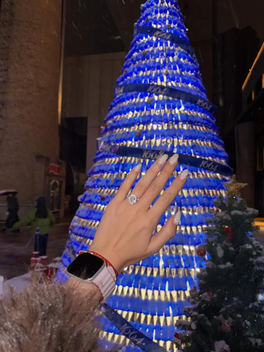 Також Олена показала яскраву світлину каблучки на своїй руці, яку вона сфотографувала на фоні новорічної ялинки у Китаї, де вона наразі живе і займається тренерською діяльністю.
