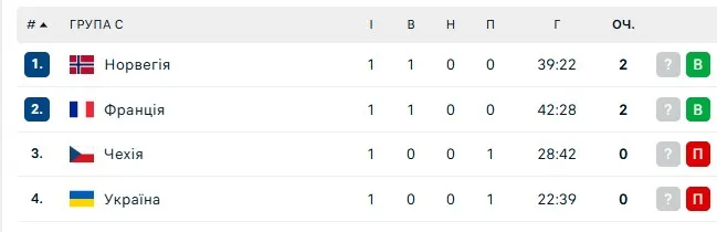 В іншому матчі нашої групи Франція, яка є чинним чемпіоном Європи, розгромила Чехію з рахунком 42:28.