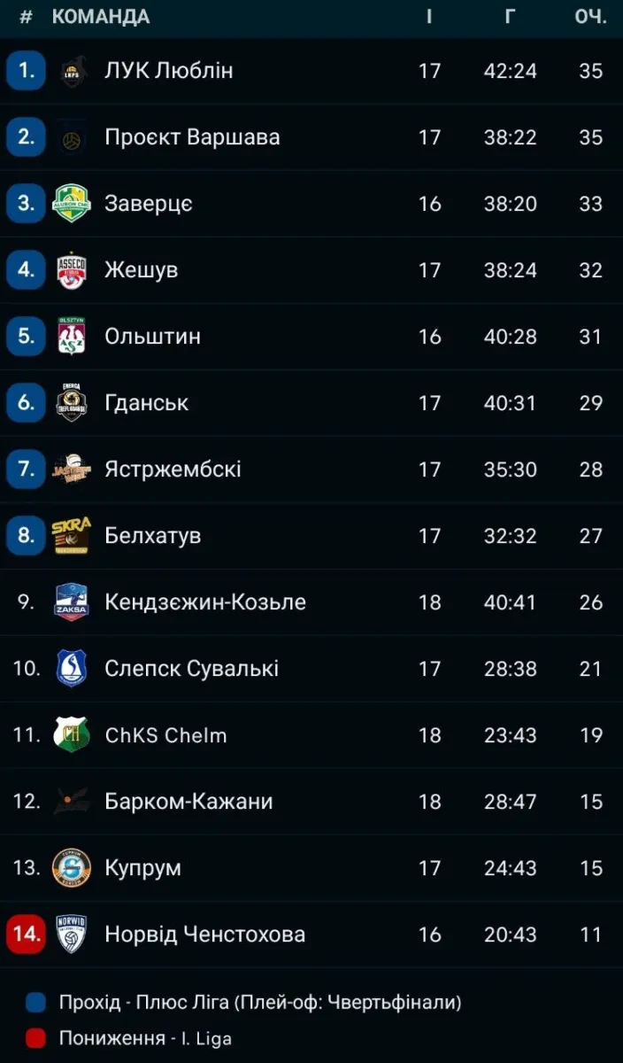 - Цей успіх став продовженням позитивної серії після нещодавньої перемоги над варшавським Проєктом, який виступає в Лізі чемпіонів.