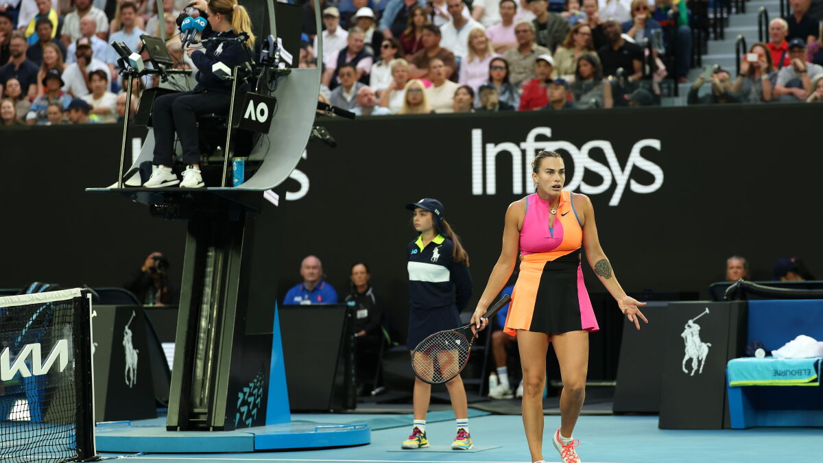 Aryna Sabalenka is called for a hindrance by the umpire for a 'different style of grunt' 🔊 pic.twitter.com/26qBmgp130